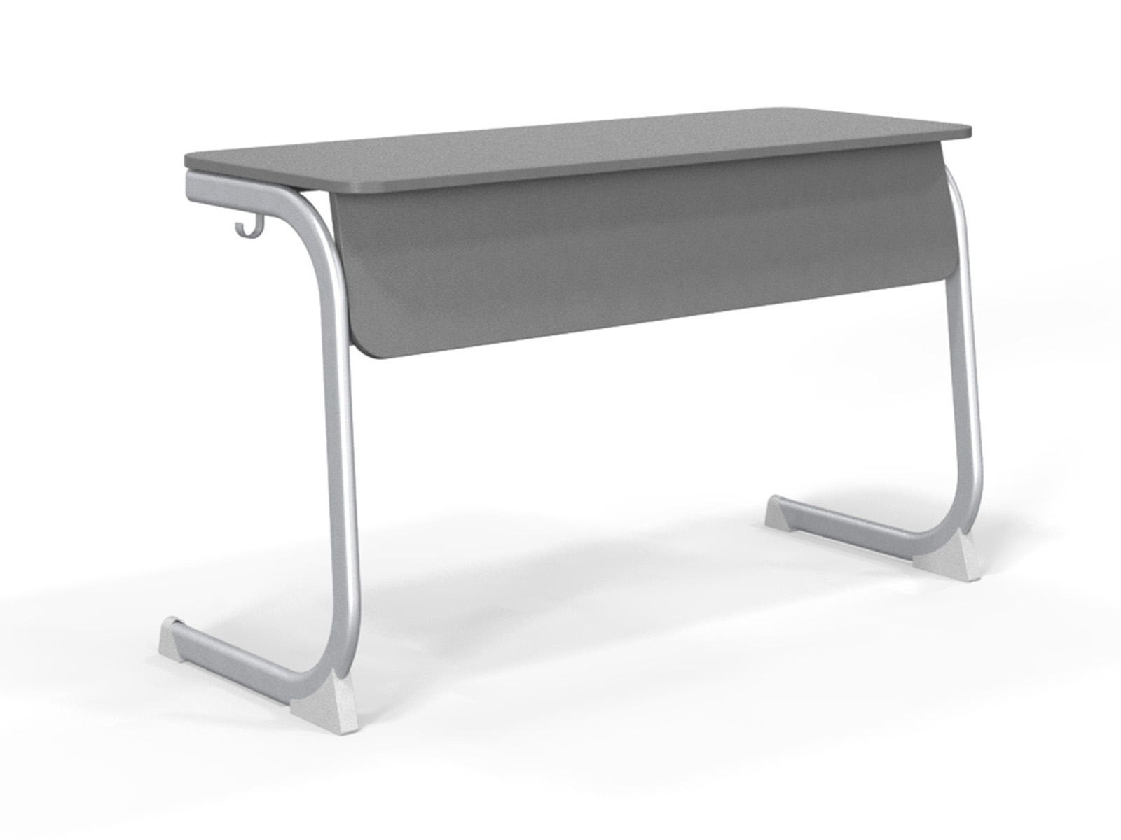 Das Tischgestell des Herstellers “ALEX Fémbútor Kft” ist 50 x 25 mm groß und in C-Form gebogen. Es ist aus Flachrohr, geschweißt und hat eine pulverbeschichtete Oberfläche. Die Fußgleiter und Verschlussstopfen aus sind aus Kunststoff. Tischplatte und Frontblende bestehen aus einer 18 mm starken beidseitig melaminharzbeschichteten Feinspanplatte mit ABS-Sicherheitskante.