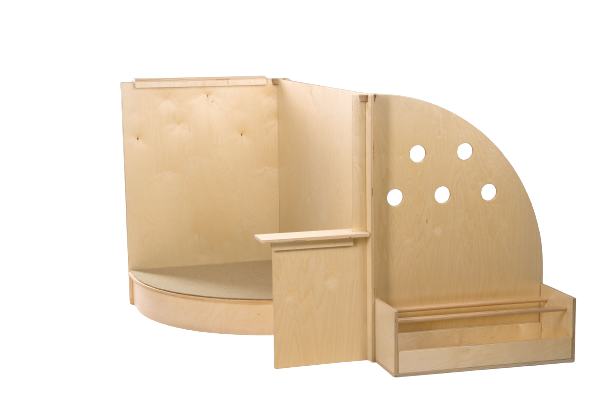 Mit diesen Spielwänden wird für Kleinkinder ein geschützter Spielbereich erzeugt. Dabei werden unterschiedliche Flächen für die Kinder geboten: auf dem Podest kann eine gemütliche Kuschel- und Leseecke erzeugt werden, in dem großen Regal können viele Materialien aufbewahrt werden und die Kiste eignet sich ideal als Bücherkiste oder umgedreht als Bank. Eine optimale Ergänzung ist der Maltisch Firma Dusyma.