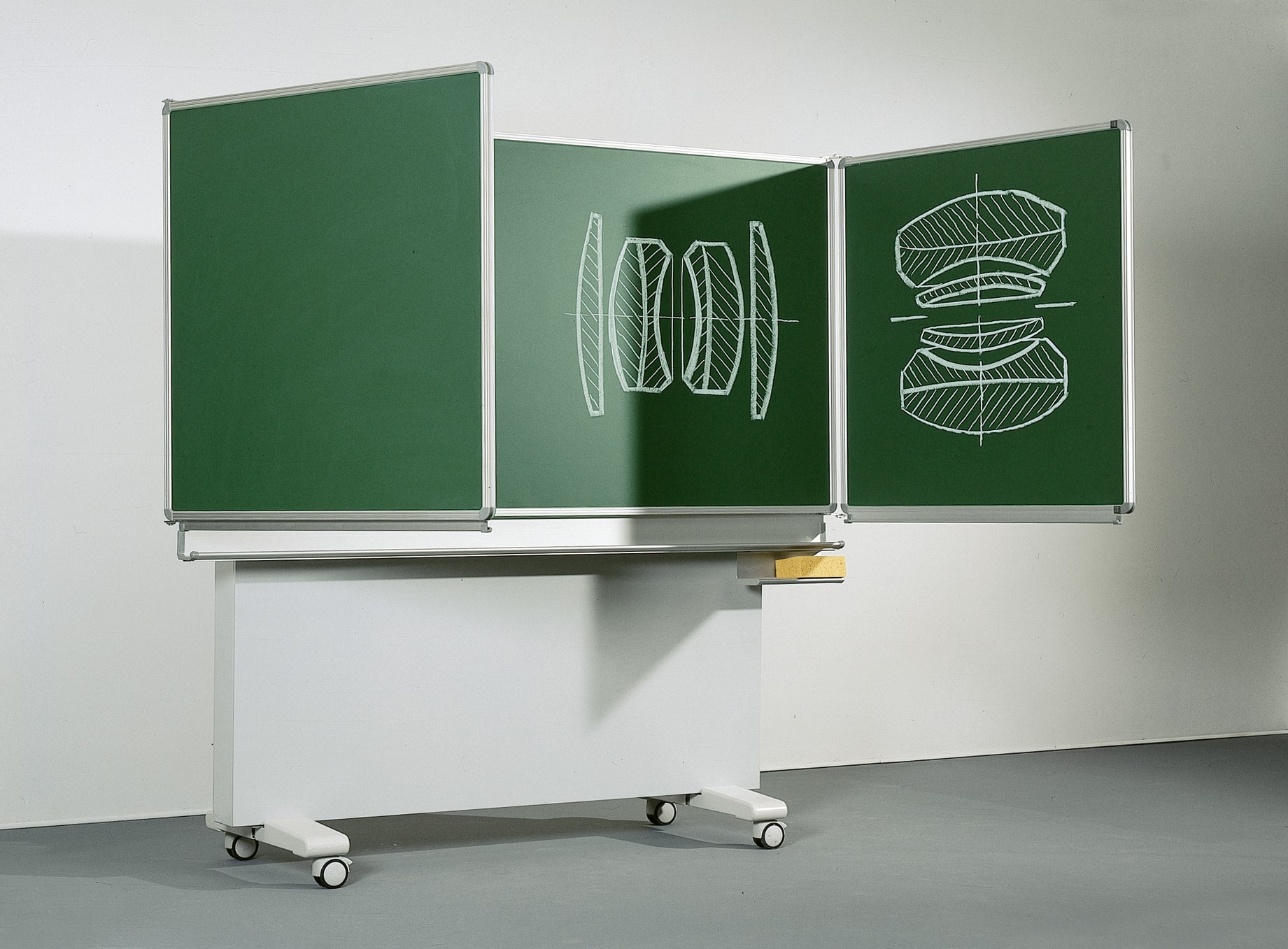 Die freistehende Klappschiebetafel ist eine flexible Lösung für Klassenräume oder Bildungsräume aller Art. Die Klappschiebetafel ist mit einer Kreideablage, einem Sicherheitskantenschutz und einem Schwammkasten ausgestattet. Neben der Auswahl von zwei verschiedenen Größen kann die fahrbare Tafel in Grün und Weiß bestellt werden. Falls eine feststehende Variante gewünscht ist, so ist auch dies gerne möglich.