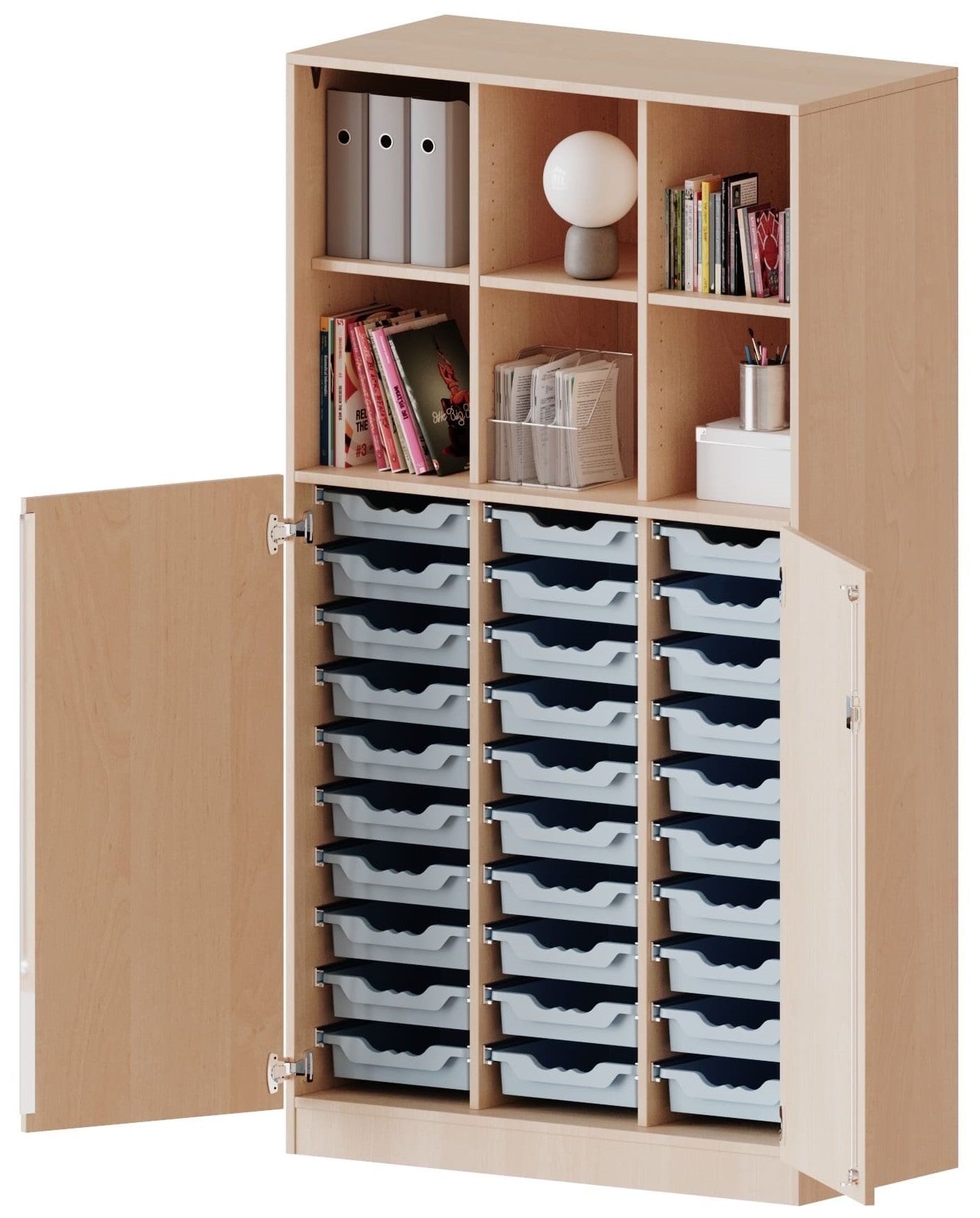 - unteren 3 Ordnerhöhen durch eine Tür verschließbar, darüber 2 offene