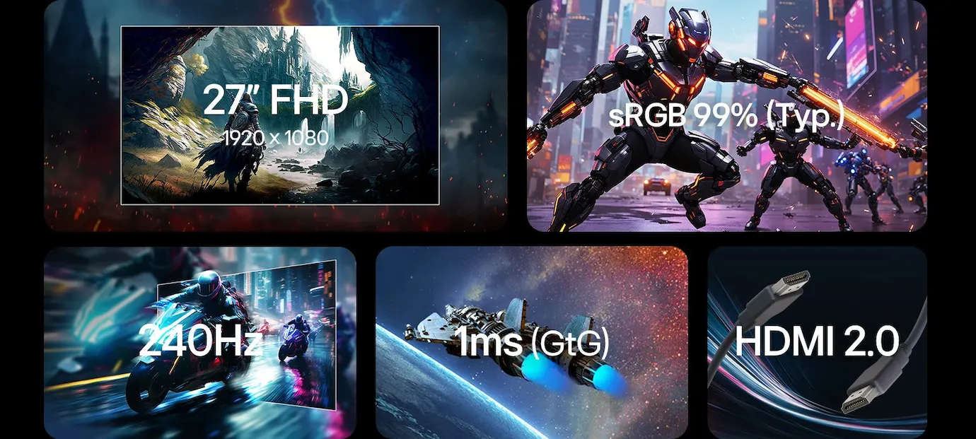 - 1ms Reaktionszeit (GtG): Minimieren Sie Ghosting-Effekte für präzise Reaktionen in Echtzeit.