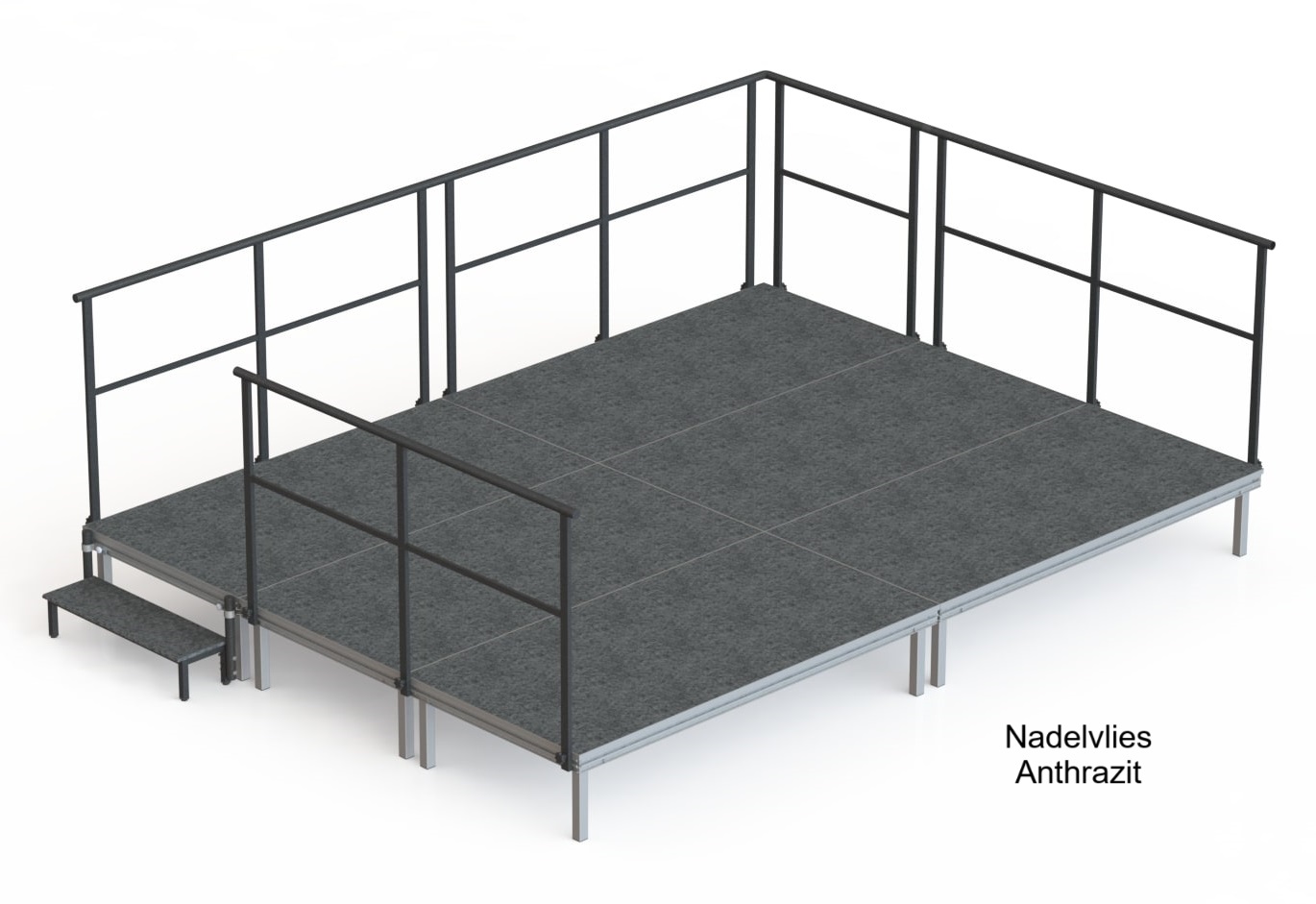 - Bühnenboden mit Nadelvlies in der Farbe Anthrazit (Stärke 5 mm, Trägerplatte 18 mm)