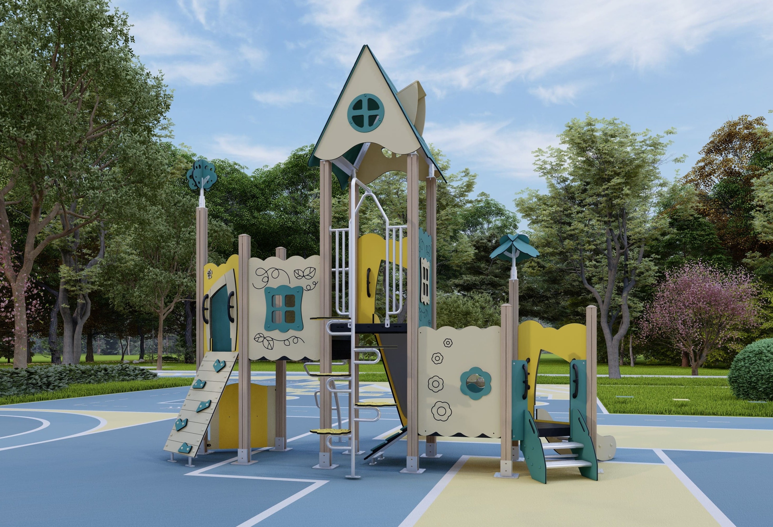 Das Spielgerät „Serelune“ erweist sich dabei als echtes Platzwunder, das auf einer kompakten Fläche vielfältigste Spielmöglichkeiten vereint und Kindern unterschiedlichen Alters genau den richtigen Anreiz bietet. Während die Jüngeren in Bodennähe sicher experimentieren, finden die älteren Kinder in den höheren Ebenen des Klettergerüstes spannende Herausforderungen für ihre Motorik und ihren Bewegungsdrang. So entsteht ein lebendiger Spielort, der durch seine hohe Funktionalität und fröhliche Gestaltung alle Kinder zusammenbringt und maximalen Spielspaß in jedes Umfeld bringt.
