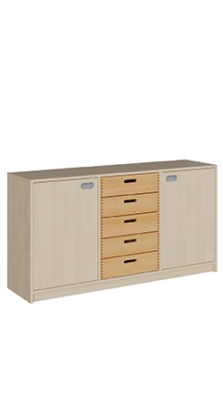 - Variante 3: 2 Türen links und rechts und 5 Massivholzschübe mittig