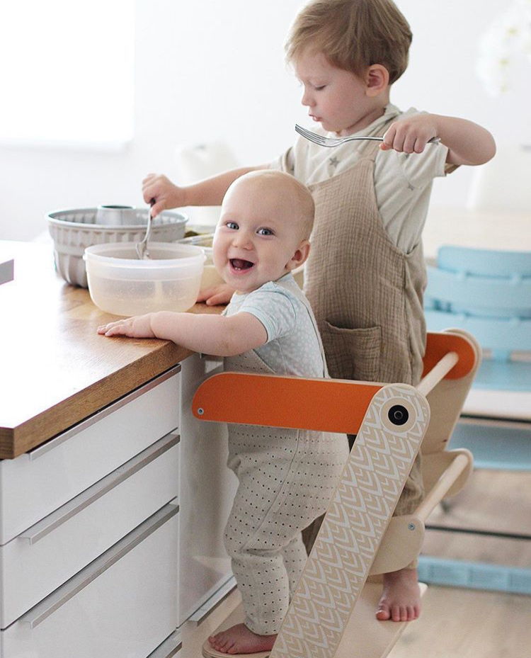 Kid Helper ist eine mit dem Kind mitwachsende Variante des Lernturms. Die Höhe der Stufen kann an die Körpergröße des Kindes angepasst werden. Wenn das Kind ihn nicht mehr benötigt, können Sie einfach die Seitenteile entfernen und ihn als Tritthocker verwenden.