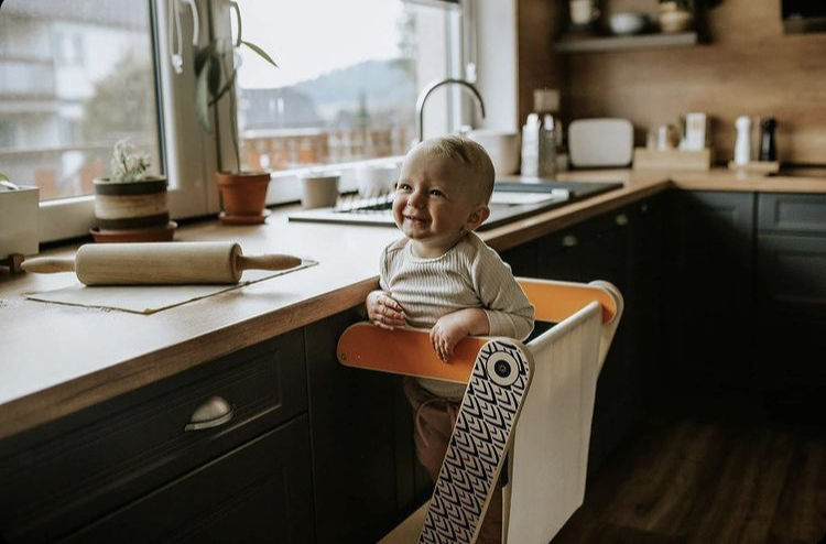 Schaffen Sie eine sichere Lernumgebung und binden Sie die Kinder in Ihren Arbeitsalltag ein. Ob auf der Küchenarbeitsplatte, Spüle oder am Basteltisch - hier können die Kleinen beobachten, mitmachen und sich so ganz natürlich verschiedene Fähigkeiten aneignen.