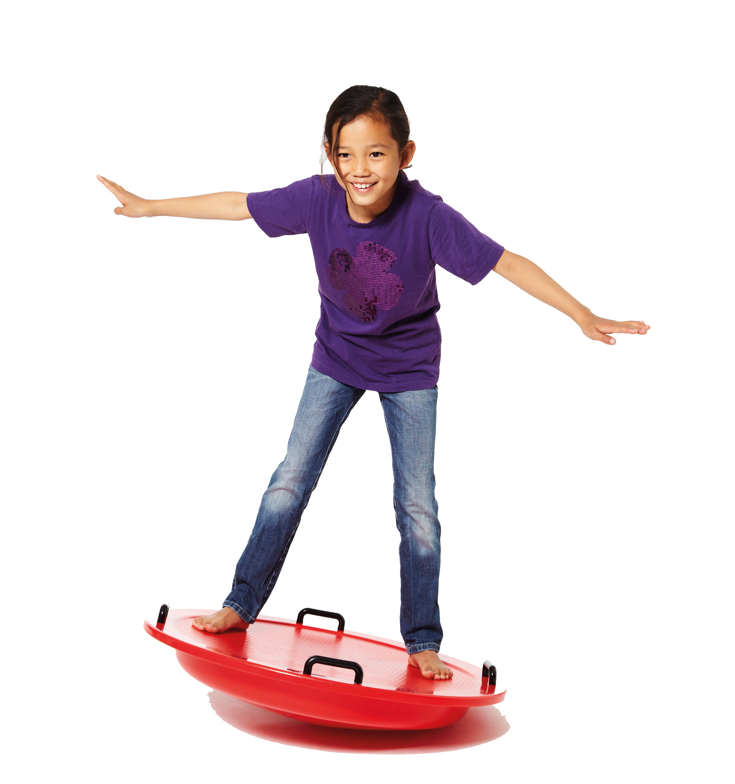 Hin- und herschaukeln, sich drehen und das Gleichgewicht halten: Kinder können auf dem Board stehen und sitzen. Förderung und Entwicklung motorischer Fähigkeiten und des Gleichgewichtssinns.