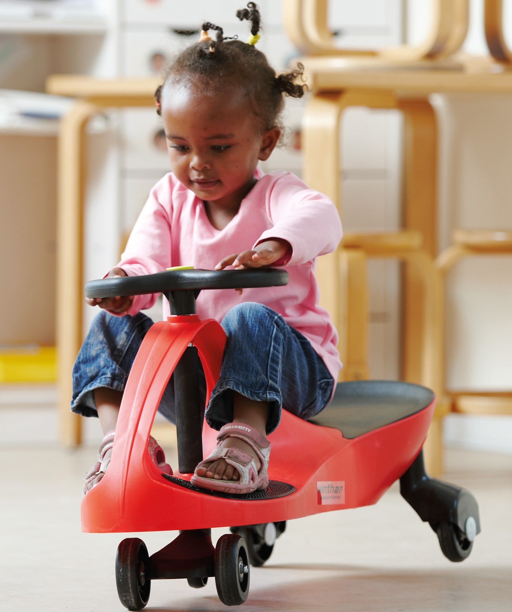 Das Original PlasmaCar ist ein einzigartiges Fahrzeug, das dem Fahrer viel Spaß bietet, da es eine überraschend andere Art der Fortbewegung bietet. Das PlasmaCar bewegt sich selbstständig vorwärts, wenn das Lenkrad in regelmäßigen Bewegungen von rechts nach links gedreht wird. Es bewegt sich rückwärts, wenn das Lenkrad um 180 Grad gedreht wird und dieselben Bewegungen ausgeführt werden. Die Kinder stellen ihre Füße auf die Fußablage, lehnen sich leicht nach vorne, umfassen das Lenkrad und setzen ihre Bewegungsenergie als Antriebskraft ein. Gestoppt wird das Fahrzeug durch das Herabsetzen der Füße auf den Boden.