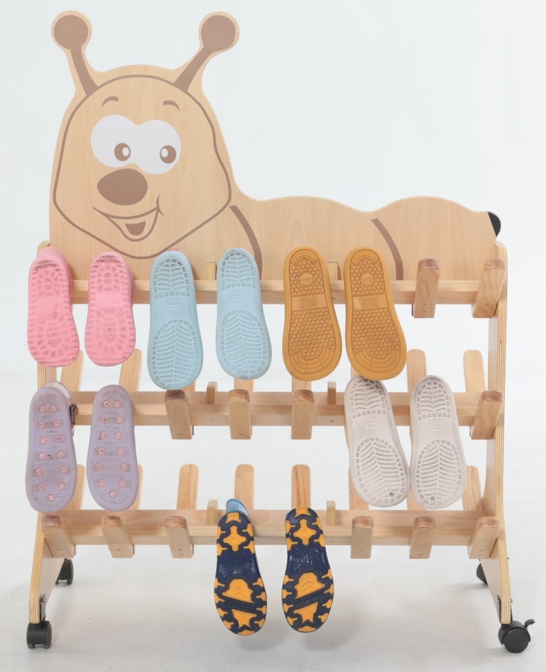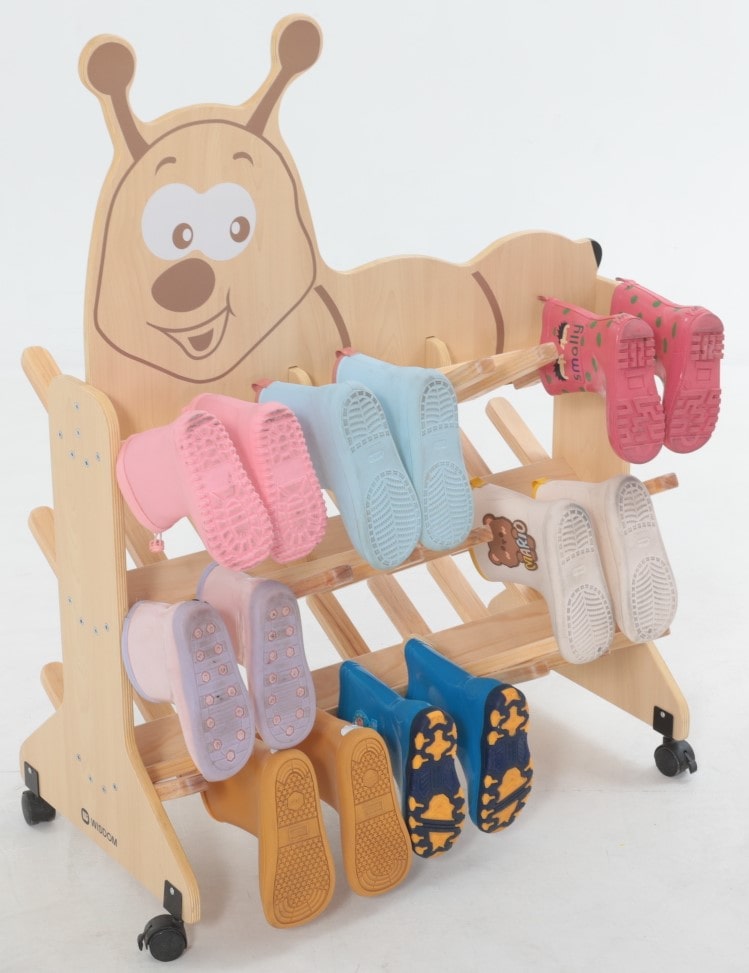 Dieser Stiefelwagen von Wisdom ist fahrbar und bietet Platz für 24 Stiefel. Ideal für den Eingangsbereich im Kindergarten geeignet, in dem die Kinder mit Freude Ihre Stiefel auf den Füßen der Raupe ablegen können.